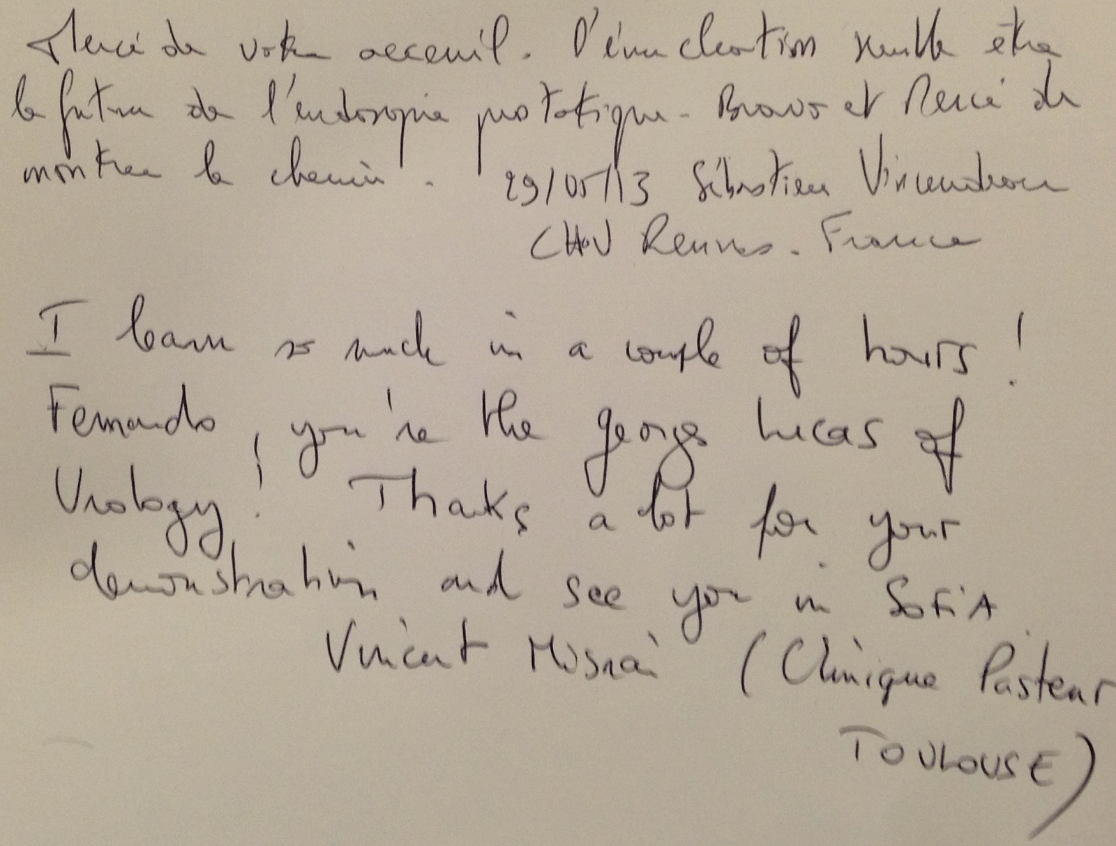Y estos fueron sus comentarios en el libro de visitantes del Instituto de Cirugía Urológica Avanzada.
